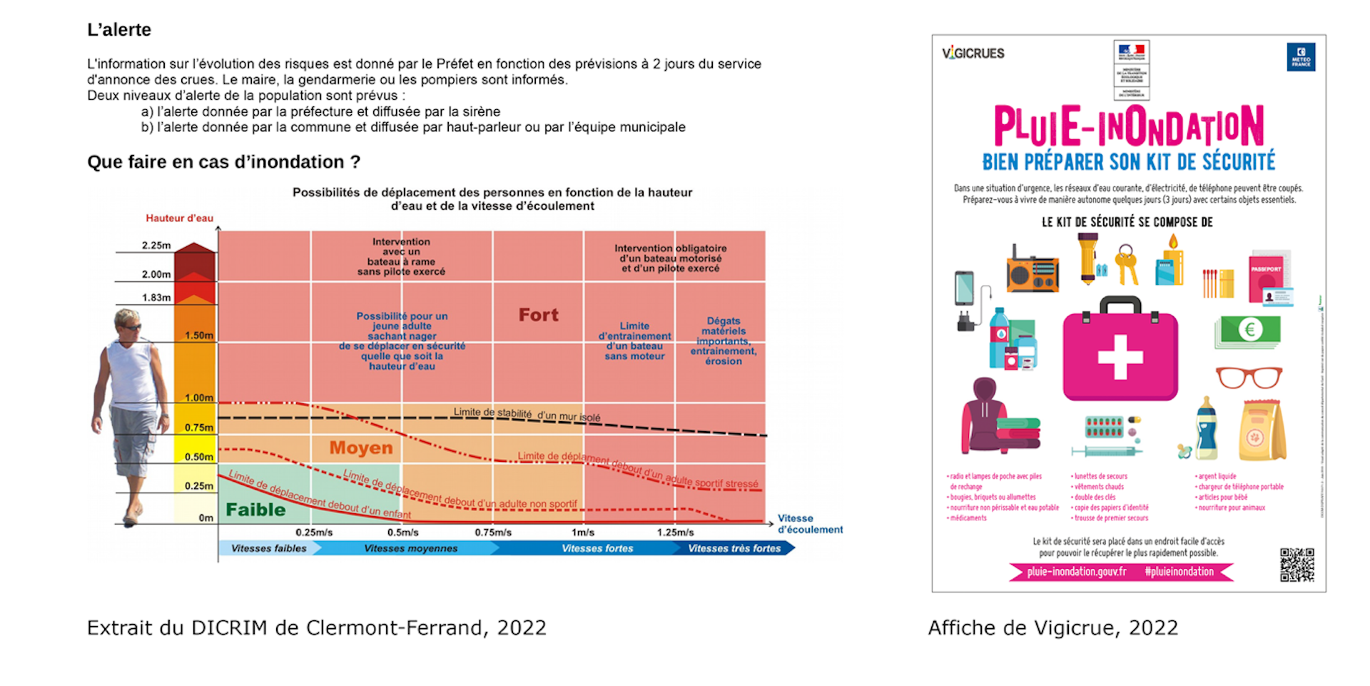 Exemples de documents de prévention locaux et nationaux utilisés pendant l’enquête 2022.Dicrim Clermont-Ferrand, Vigicrue 2022, Fourni par l'auteur
