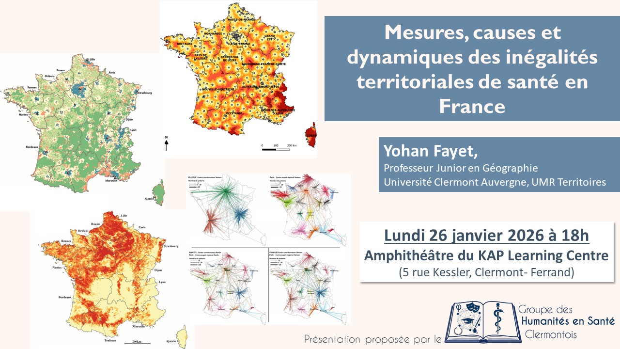 Intitulée « Mesures, causes et dynamiques des inégalités territoriales de santé en France », la conférence du 26 janvier sera animée par Yohan Fayet, Professeur Junior en Géographie à l’UMR Territoires de l’Université Clermont Auvergne.